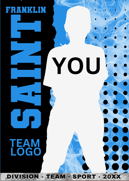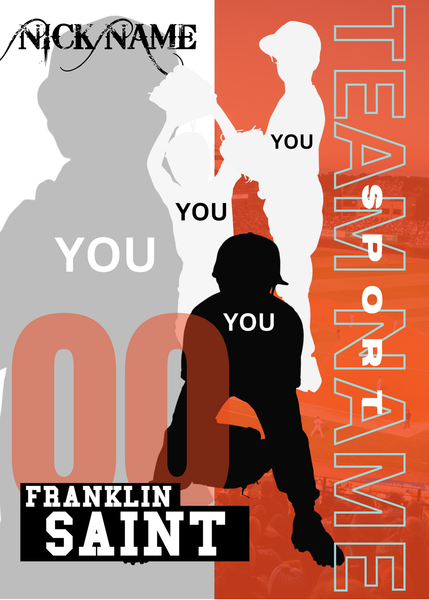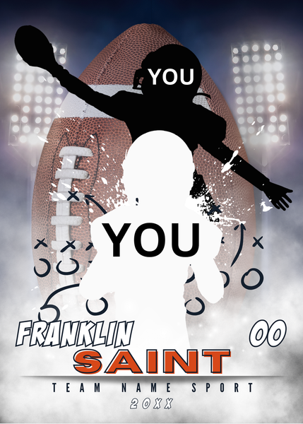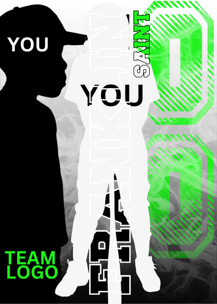 We take your supplied photos and create a totally unique sports design of your love one. I can help you capture a special memory for a lifetime. We customize your template with individual team colors, numbers, names, date, statistics, or however you would like to customize it.